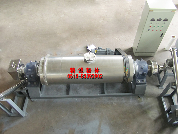 物料由送料機(jī)經(jīng)入料中空軸螺旋均勻地進(jìn)入球磨機(jī)倉,內(nèi)裝三種不同規(guī)格的球介,筒體轉(zhuǎn)動產(chǎn)生離心力將球介帶到一定高度后落下,對物料產(chǎn)生重?fù)艉脱心プ饔谩N锪显趥}達(dá)到粗磨后,經(jīng)單層隔倉板進(jìn)入第二倉,該倉內(nèi)裝有四種不同規(guī)格的球介,將物料進(jìn)一步研磨。粉狀物通過出料口篩欄板排除,進(jìn)入振動篩粉機(jī)進(jìn)行分級完成研磨作業(yè)。